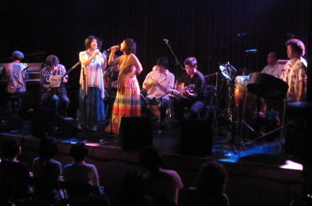 比屋定篤子が「月ぬかいしゃ」を、松田美緒が「Tonada de Luna Llena(満月の夜のトナーダ)」を同時進行で歌うというアカペラ・デュエットに続き、ショビシュバ10周年のフィナーレは出演者全員で「翼」。