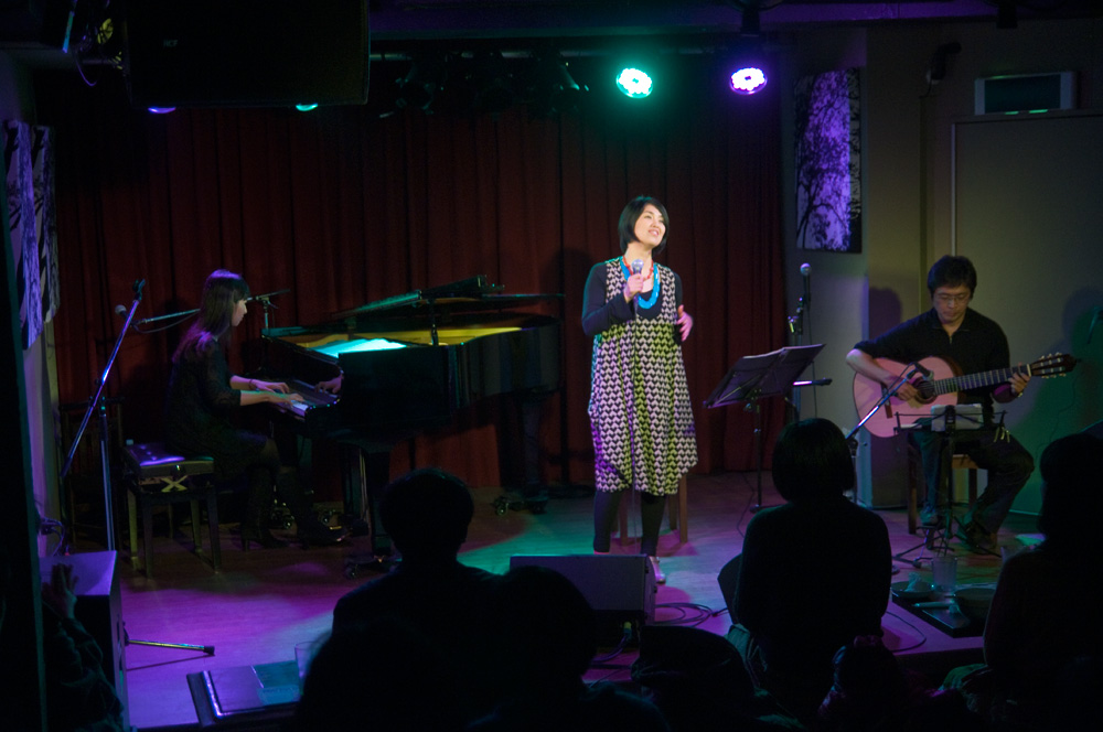 2011年初の東京でのライヴは、渋谷のLive & Pub gee-ge.(ジージ)にて。おなじみ笹子重治(ギター)、東京での共演は6年半ぶりの共演となる鬼武みゆき(ピアノ)との2タイプのデュオ、そしてトリオ編成でお送りしました。